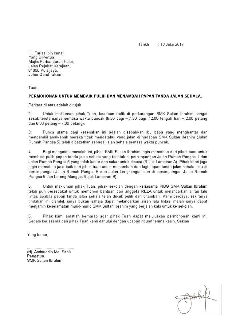 Contoh Surat Rasmi Permohonan Papan Tanda Surasm Otosection